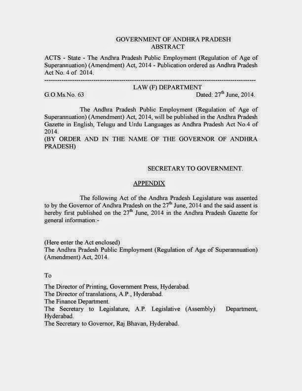 Go.63 dt.27/6/2014 retirement age raised to 60 years for Andhra pradesh govt employees