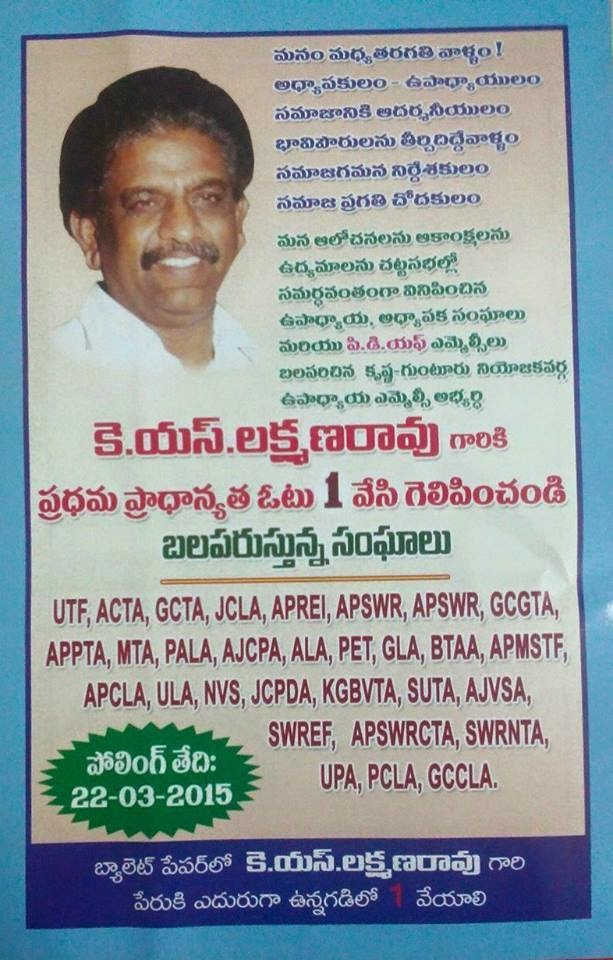 Cast ur 1st preference vote to K S Lakshmanarao on 22/3/2015 MLC election
